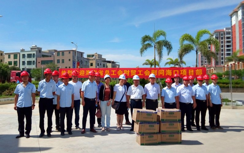 高溫籠罩下,6月21日,海南省總工會財貿(mào)工會主席呂亞平一行來到??谑行颅偲瑓^(qū)回遷商品房(一期)項目建設(shè)工地“送清涼”,中交海投工會主席唐世連,省總工會財貿(mào)工會常委、經(jīng)審主任歐陽水坤一同慰問。