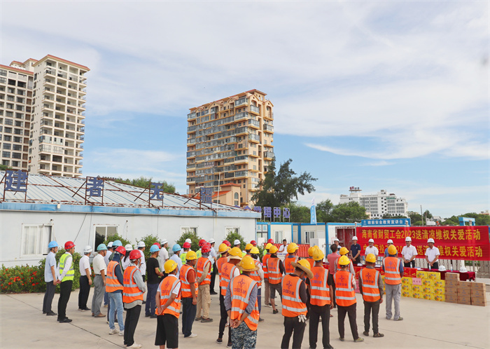 炎炎夏日送清涼,份份關(guān)懷暖人心。6月19日,海南省財(cái)貿(mào)旅游煙草工會(huì)常務(wù)副主席童智忠到東方八所中心漁港項(xiàng)目開(kāi)展送清涼維權(quán)關(guān)愛(ài)活動(dòng),持續(xù)深化“我為群眾辦實(shí)事”實(shí)踐活動(dòng),切實(shí)做好夏季防暑降溫工作,維護(hù)職工安全健康權(quán)益。中交海投黨委副書記、工會(huì)主席楊凱陪同參加慰問(wèn)活動(dòng)。